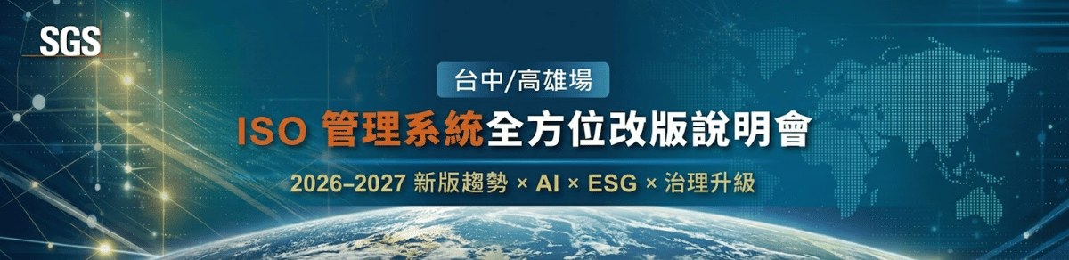 從最新釋出的國際標準草案來看,治理能力、風險思維、數位化應用與 ESG,已經從過去的「加分項」正式躍升為管理系統的「核心能力」 。未來的管理系統將不再只是應付稽核的「符合性工具」,而是真正支撐企業決策與組織韌性的關鍵架構 。如果您仍以「單一標準、單一部門」的舊思維來因應,未來企業的管理成本與稽核風險只會面臨持續飆升的困境 。為此,SGS特別籌辦了「ISO 管理系統全方位改版說明會」 ,短短半天,帶您看懂三個真正關鍵的改變: