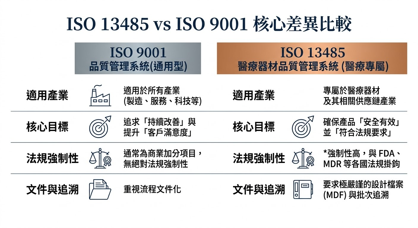 ⚖️ ISO 13485 與 ISO 9001 有什麼差別?